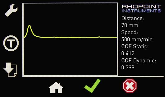 測(cè)試后立即在屏幕上顯示靜態(tài)和動(dòng)態(tài)摩擦系數(shù)結(jié)果